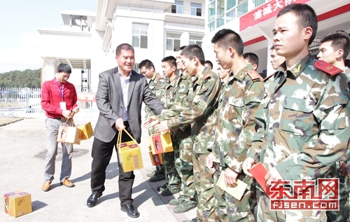 東南網11月25日訊(記者 吳楊珠 通訊員 王樹瑜/攝)11月24日,福建省愛國擁軍模范黃向東先后來到浦城縣武警中隊、消防大隊慰問退伍軍人,為他們送上浦城地方特產小密包酒、慰問金和老兵的祝福,向即將退隊的軍人講述自己的創業故事,引導他們步入社會后要發揚部隊優良傳統,依法行事、守法致富。 黃向東從部隊退伍后,自主創業,從創辦浦城縣正大液化氣儲罐有限公司,到浦城縣小密酒業有限公司,解決當地百余名退伍軍人、農村富余人員就業,成為省優秀復退軍人。他計劃投資1.2億元在榮華山產業組團建設印象小密文化光觀園,從去年10月開工建設,至今已完成投資4000萬元,力爭年底前2條生產線建成投產,年可生產包酒3000噸。 |