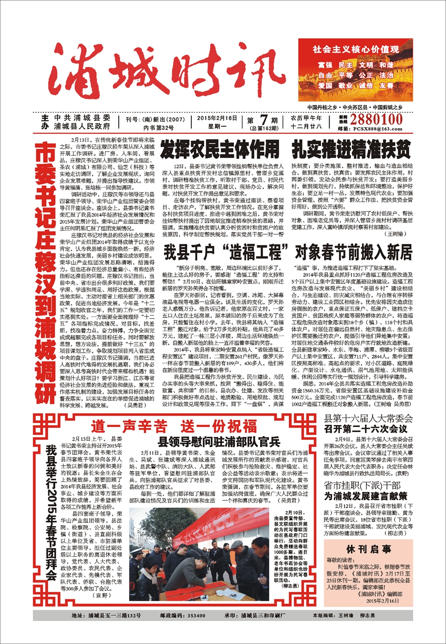 | 2015-03-13 10:07:44??來(lái)源:浦城新聞網(wǎng) 責(zé)任編輯:鄧忠衛(wèi) 我來(lái)說(shuō)兩句 |
