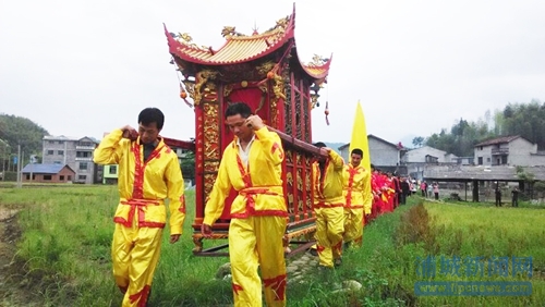 “媽祖”文化源自古代水運發達 前洋自古是浙江入閩的重要通道,從唐宋時期開始,水運便十分發達,尤其是明清時期,更是盛極一時。龍泉及富嶺前洋一帶盛產的木材、毛竹、香菇及藥材厚樸等都是以前洋古碼頭為中轉站,通過前洋溪順流而下至富嶺的大石溪,再轉運至南浦溪運到外地。 該村村支書葉必得的父親就是撐排人,他說:“把要運出的木頭和毛竹扎成排,貨物便便放在排上,到了城關碼頭,再把木(竹)排解開,一起運上大貨船。從大石溪至南浦溪的水路,需逆流而上,時常會發生事故,所以便有了媽祖崇拜。村民們從莆田請來了媽祖,于大宋年間興建天后宮祭祀媽祖,并于乾隆8年和光緒24年重修,可惜文化大革命時被拆了建大會堂,現存的天后宮是1997年新建的。” 據悉,浦城有19座媽祖廟,但是把“媽祖文化”傳承沿襲得這么完整的只有前洋。
