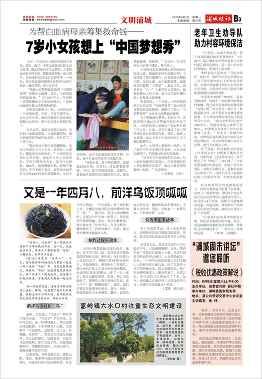 2015-06-01 15:47:33??來源:浦城新聞網  責任編輯:林張清   我來說兩句