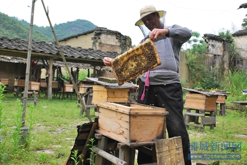 ——張林友的養(yǎng)蜂故事 四周群山清秀蒼翠,山上綠樹成陰,各色花兒競相綻放,一條清澈見底的小溪穿村而過,村中成千上萬只蜜蜂飛舞,忙著采集花蜜。5月25日,記者在水北街鎮(zhèn)翁村馬安看到一幅人與大自然和諧相處的畫面。這些忙忙碌碌的“小生靈”的主人叫張林友,今年72歲,有著四十多年的養(yǎng)蜂經歷,從上世紀六十年代最初的幾群土蜂發(fā)展到現在的100多箱中蜂,把“甜蜜事業(yè)”做得紅紅火火,也成了遠近聞名的“蜂王”。 提起養(yǎng)蜂人,在大多數人的腦海中,都會浮現那些載著蜂箱尋蜜源、哪里有花去哪里的游徙養(yǎng)蜂人的生活。他們風餐露宿,與蜜蜂為伴,在辛苦中收獲甜蜜。然而,張林友卻與眾不同,他守在自家大門口,不用外出就能收蜜,過著頗為自在的幸福生活。“我們村歷年來就有著保護生態(tài)的傳統,這些年來,大家寧愿日子苦點,也不動山上的一草一木,村子四周有著綿延10里,面積5000多畝的生態(tài)公益林,這上好的環(huán)境給蜜蜂提供天然的蜜源,也釀出了馬鞍源獨有的口味蜂蜜。”說起自己的村子和蜂蜜,張林友頗為自得地告訴記者。 “活到老,學到老。養(yǎng)的時間長了,也就能摸索出養(yǎng)殖蜜蜂的一些規(guī)律。”張林友說,他還向我們展示了他最新“張氏收割蜂蜜技術”,蜂箱里的蜂框,原先都是整片的,取蜜時放入搖蜜機,雖然搖出蜂蜜,也把里面的幼蟲給破壞了,影響蜜蜂的成活率。而現在把蜂框分上下兩層,只要把上面一層拿出即可(蜂蜜80%都在上層),這樣節(jié)省勞力,又提高幼蜂的成活率。 “養(yǎng)蜂雖然是個苦力活,可每次取蜜時是最幸福的。”張林友說,這些年幾乎每天都被蜜蜂蜇,現在手背上密密麻麻的黑斑,就是被蜜蜂蜇的。每年的五月,山上的槐花、栗子花等花開始,都是最好的蜜源,這時也進入了蜂蜜的高產期。為保證蜂蜜的濃度,他一般都會選擇在次日上午收割前一天蜜蜂采回的蜜。他說,蜂蜜經過一夜的風干,水分會很少,由于貨真價實,他家的蜂蜜不出家門就賣光了。年景好時,80箱蜜蜂,一年能產蜂蜜500多公斤,年收入可達8萬元。 由于技術好,前來學習養(yǎng)蜂技術的人絡繹不絕,張林友的“甜蜜事業(yè)”也在不斷發(fā)展壯大。2012年他成立了馬鞍源蜂業(yè)養(yǎng)殖專業(yè)合作社,合作社從最初的5戶發(fā)展到現在71戶,蜂蜜不僅在福州、廈門等地銷售,還賣到臺灣、馬來西亞。去年,合作社銷售9噸蜂蜜,年收入140萬元。今年預計可產蜂蜜15噸,銷售額在240萬元左右,合作社還打算注冊商標,把馬鞍源蜂蜜做大做強。 “最初養(yǎng)蜂,是想靠養(yǎng)蜂賺錢。現在不管虧還是賺,我都愿意養(yǎng),比起賺錢,養(yǎng)蜂更像我的一種愛好,一天不跟蜜蜂打交道,我就渾身不自在。”張林友說,四十多年的養(yǎng)蜂經歷,蜜蜂早已成為他生命中的一部分,平常起床的第一件事就是到蜂箱旁看看,夜里也是常常夢到蜜蜂的事,經常會因為夢到自己的蜜蜂死了而哭醒、嚇醒。看著蜜蜂在空中飛舞,聽著蜜蜂嗡嗡作曲,感受著蜜蜂在手上癢癢爬動,他覺著這是人生中最幸福的感覺。(左賢斌 余凌云) |
