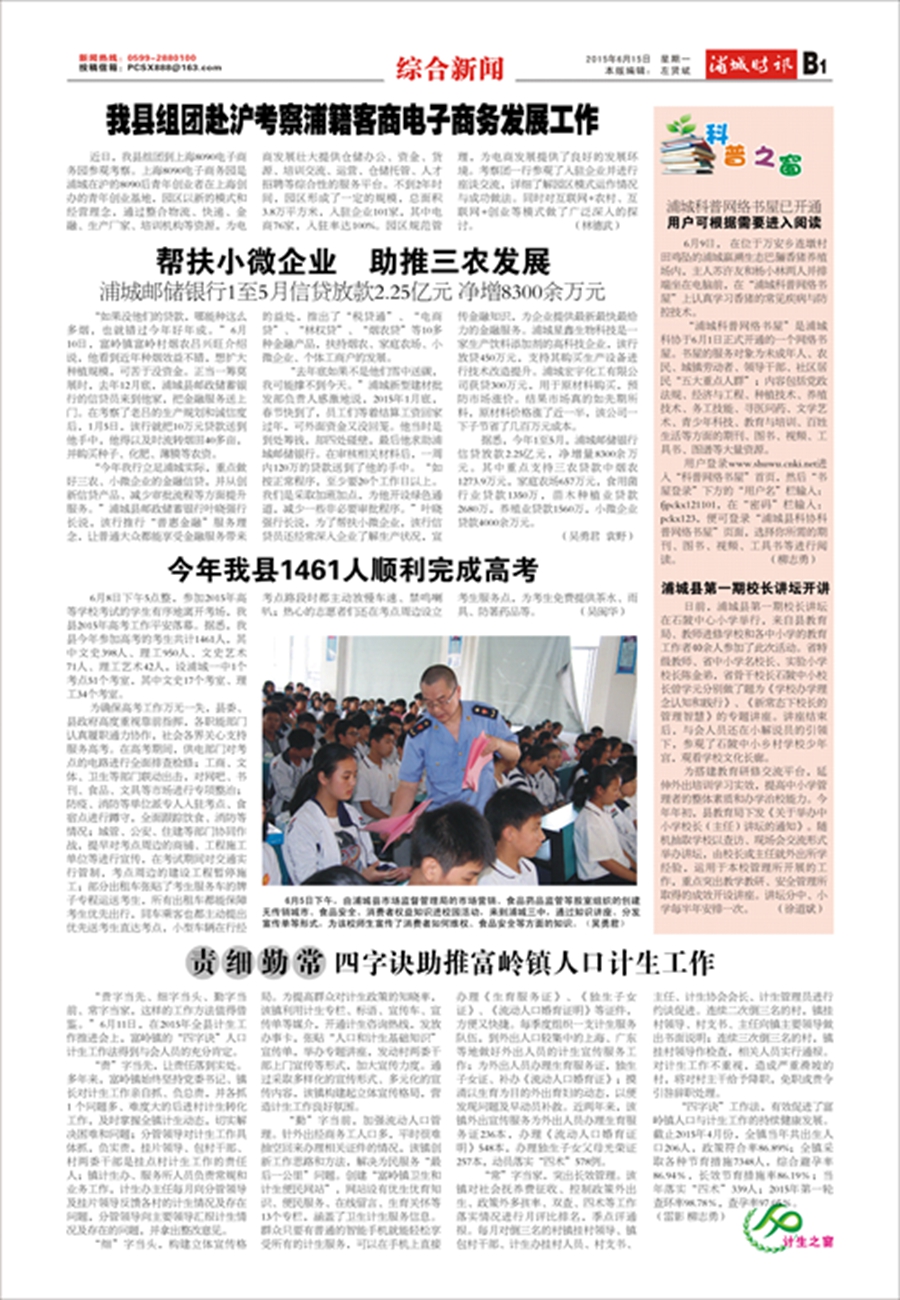 | 2015-06-16 10:56:29??來源:浦城新聞網(wǎng) 責任編輯:施柳清 我來說兩句 |
