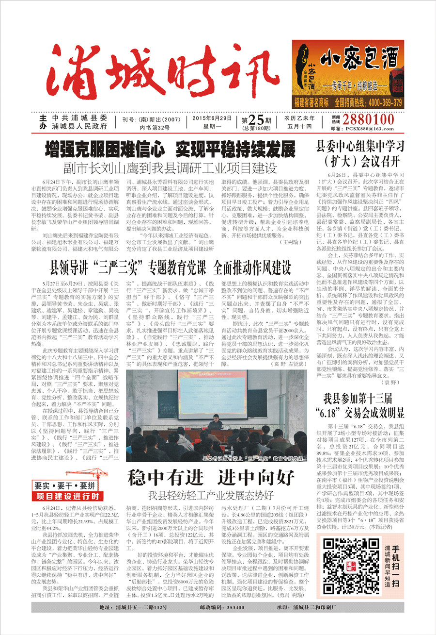 《浦城時訊》2015年第25期
