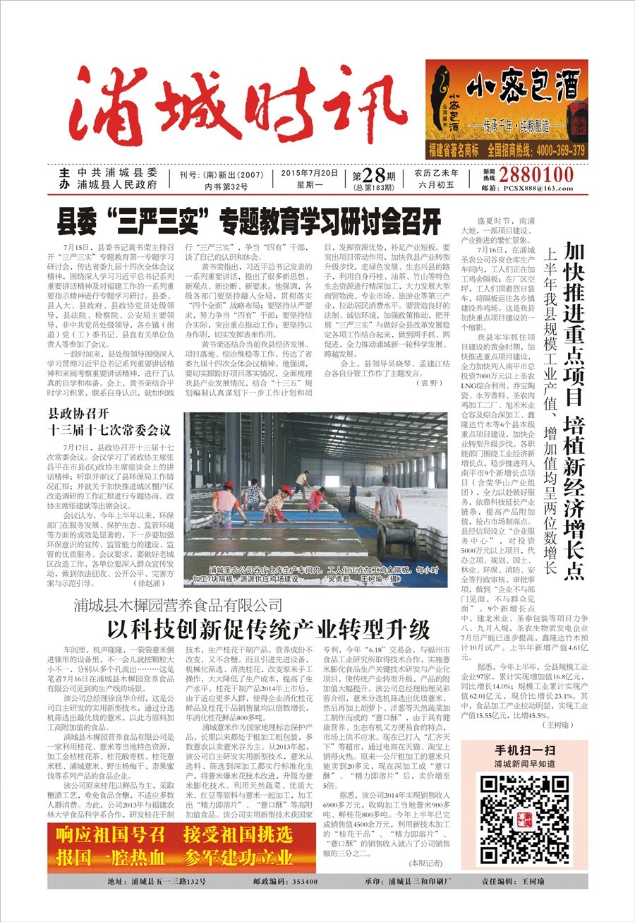 | 2015-07-20 14:47:14??來(lái)源:浦城新聞網(wǎng) 責(zé)任編輯:施柳清 我來(lái)說(shuō)兩句 |