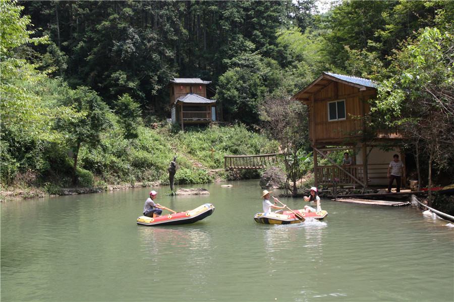 推薦線路一:山下鄉鐵場村情人谷 都說山下鄉鐵場村情人谷是一個休閑納涼、親近自然的好去處。7月28日,記者滿帶好奇走進這里,果不其然,這確實是個休閑避暑的好地方。 清水激石,泠泠作響,這大自然的美妙樂章算是龍潭峽谷的召喚吧!沿岸鋪著青石的起伏小路上蜿蜒著木質走廊,兩旁種植南瓜、葡萄等果蔬,藤蔓參差不齊蒙絡搖綴,百來步的走廊漫步其間感覺陰翳涼爽,一不小心就邂逅了懸掛的果實,饒有趣味的幸福走廊看出了設計者別有用心的創意,以開花結果來象征愛情。 前行數百步,一方清水寒潭,一群怪石從水中突兀而出,潭中游弋的魚兒自由自在 ,四周灌木環合,林中鳥兒爭相啼鳴好不快活。坐潭邊,光腳浸入潭水中,一股清涼串行而上,將夏日暑氣消除殆盡,此時恨不得跳入潭中來個清涼通透。游客可獨自泛"舟"水面,盡情享受山光水色給人帶來的閑適;也可以與心儀的對象嬉水潭中,一起蕩起手中的漿齊心協力方可進退自如。 溯溪而上就到了龍峽飛瀑,瀑布對面建有一座觀景臺,站在臺上,瀑布全景盡收眼底,水流源頭處瀑布如一根巨大的銀鏈鑲嵌在石壁上,潺潺的流水隨著山勢俯沖而下,砸落在石壁上和深潭中,騰起蒙蒙水霧,在陽光照射下熠熠生輝,一片浪漫景象。 游峽賞谷后略感疲憊,此時三五好友,可選一流水淙淙的澗邊,或閑話家常,或燒烤野餐,或飽餐一頓農家飯菜,疲憊的精神又會為之一振。若是一家人出游,林中的秋千、摸魚等活動項目老少皆宜,一家人參與中其樂融融。整個峽谷,景致多變而神奇,各種趣味不做詳敘待游人自去體會。(何斌杰 張依婷) |