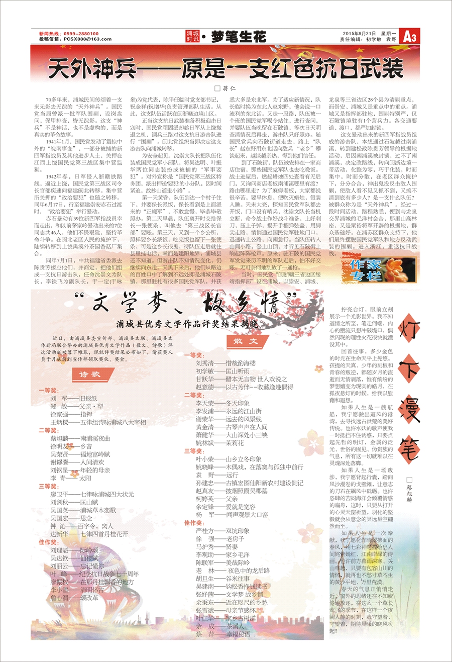 2015-09-25 14:10:19??來源:浦城新聞網  責任編輯:   我來說兩句