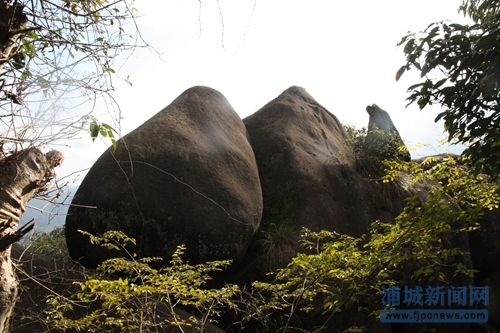 雙乳峰 12月1日,迎著初晨的朝陽(yáng),伴著瑟瑟的寒風(fēng),我們踏上了山下鄉(xiāng)源頭村坪坑山的尋美之旅。從城關(guān)乘車(chē)出發(fā)約一小時(shí)左右,我們到達(dá)了山腳的坪坑自然村。老人們坐在古橋上閑聊,小溪里有幾只鴨子在嬉戲,整個(gè)村莊顯得非常安靜祥和。穿過(guò)“綠樹(shù)村邊合,青山郭外斜”的美麗的小山村,沿著曲徑通幽的羊腸小道,我們向坪坑山出發(fā)。 上山百余米,我們便來(lái)到一個(gè)叫“西子出浴”的深潭,清澈的潭水倒影著兩岸的美景,岸邊還有一個(gè)小竹筏可供游人與水近距離接觸,水中依稀可見(jiàn)幾尾小魚(yú)。細(xì)長(zhǎng)的瀑布,從山澗緩緩地落入潭中,真是應(yīng)了朱熹的那句“問(wèn)渠哪得清如許,為有源頭活水來(lái)”。我不禁沉醉在這山水中,直到同行的朋友催促,才戀戀不舍地離開(kāi),繼續(xù)向更高處前進(jìn)。
