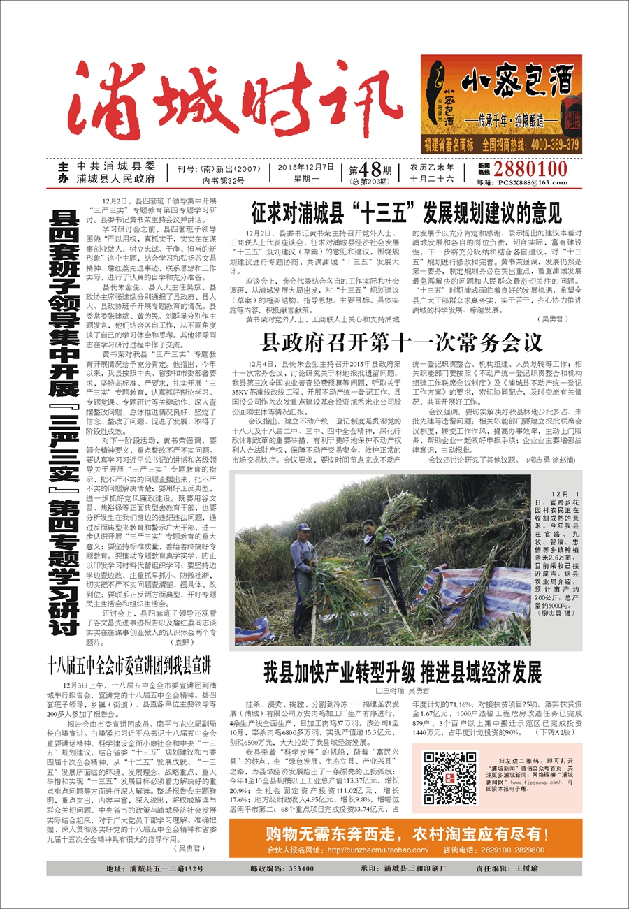 2015-12-13 20:30:14??來源:浦城新聞網  責任編輯:吳楊珠   我來說兩句