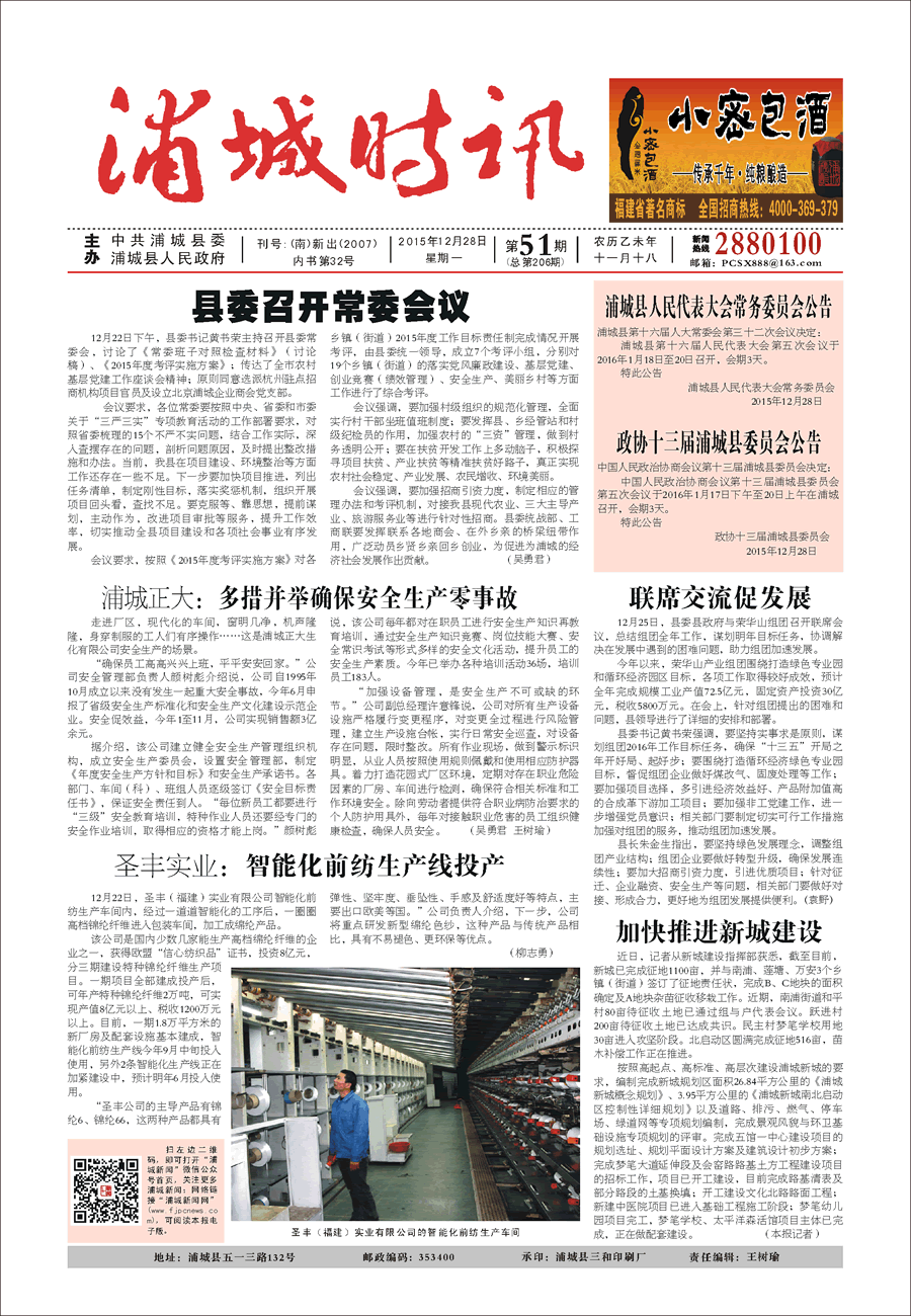 2016-01-03 17:11:16??來源:  責任編輯:浦城新聞網   我來說兩句
