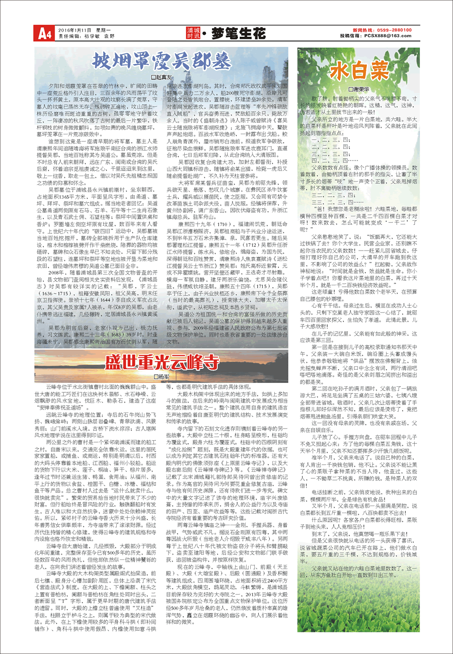 2016-01-11 14:12:10??來源:  責任編輯:浦城新聞網   我來說兩句