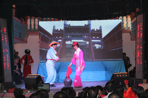 ? 核心提示:“草根班子,地?cái)傃莩觥笔菍?duì)富嶺茶燈舞的形象描寫(xiě)。茶燈舞是流傳于富嶺前洋、圳邊一帶的反映采茶婦女生活的傳統(tǒng)民間藝術(shù),它集燈、歌、舞、戲于一體,穿插說(shuō)念道白,詼諧幽默。二十世紀(jì)八十年代末,縣文化館曾多次派員深入富嶺采訪(fǎng)和研究茶花燈舞,詳盡記錄舞蹈動(dòng)作、音樂(lè)、服飾、道具等,并作人體形象描繪攝影,編寫(xiě)歷史沿革概論,后被收入《中國(guó)民族民間舞蹈集》。文化館根據(jù)這一民俗文化活動(dòng)進(jìn)行發(fā)掘、整理,創(chuàng)編的群舞《茶燈謠》《茶燈樂(lè)》《茶燈頌》等,在省市音樂(lè)舞蹈節(jié)匯演中獲獎(jiǎng)。 ? ??? “正月采茶是新年,報(bào)喜投江錢(qián)玉蓮,繡鞋脫在江渡口,大叫三聲王狀元。二月采茶桃花開(kāi),蘇秦求官空回來(lái),堂上爹娘全不睬,妻子不肯下樓來(lái)……”一群漂亮的采茶姑娘舉著茶燈,伴隨著簡(jiǎn)明歡快的音樂(lè),邊舞邊唱《采茶歌》。在近日富嶺鎮(zhèn)前洋村舉辦的媽祖文化節(jié)上,消失了四十多年的茶燈舞又重放異彩,登上舞臺(tái)。 ? ??? 茶燈舞是流傳于富嶺前洋、圳邊一帶的反映采茶婦女生活的傳統(tǒng)民間藝術(shù),它集燈、歌、舞、戲于一體,穿插說(shuō)念道白,詼諧幽默,深受群眾喜愛(ài)。 “富嶺茶燈戲早在解放初期就有很高的知名度,每逢正月,茶燈隊(duì)便走村入戶(hù),深受大家的歡迎。”前洋村支書(shū)葉必得介紹說(shuō),“但是由于各種原因,如今會(huì)茶燈表演的老藝人已屈指可數(shù),茶燈戲?yàn)l臨失傳。” ? ??? 為了讓茶燈舞“復(fù)活”,今年81歲的茶燈舞老藝人劉邦興再度“出山”,收了12位“女弟子”, 教她們茶燈舞的傳統(tǒng)戲目,這些“女弟子”都是圳邊村的村民,年紀(jì)最大的快60歲了,年紀(jì)最小的近30歲,因?yàn)閺男《δ咳荆换巳齻€(gè)多月的時(shí)間,她們便學(xué)會(huì)了《五梅花》《補(bǔ)缸》和《賣(mài)花線(xiàn)》三個(gè)戲目。 ? ??? 源流和茶事有關(guān) ? ??? “我的爺爺和父親都會(huì)表演茶燈舞,我只知道和茶有關(guān),但是從什么時(shí)候從哪里傳下來(lái)的,就不知道了。”老藝人劉邦興說(shuō)。 ? ??? 說(shuō)起茶燈舞起源何時(shí),當(dāng)?shù)卮迕窈屠纤嚾酥徽f(shuō)是祖輩傳下來(lái)的,地方文獻(xiàn)也罕有記載。據(jù)說(shuō),歷史上浦城盛產(chǎn)茶葉,而富嶺的觀(guān)音尖茶更負(fù)盛名,被列為朝廷貢品。明初時(shí)期,朱元璋鼓勵(lì)婦女種茶,由于政策有利生產(chǎn),茶園蔥綠,圳邊一帶的茶女繁忙,只好摸黑夜采。這事被天上的神仙知道了,每當(dāng)夜幕降臨時(shí),神仙即在山尖點(diǎn)起一盞茶花瓣型燈籠,把茶園照得徹夜明亮。天長(zhǎng)日久,這些關(guān)于花燈的故事就演化成一個(gè)以茶女玩燈的民間歡慶舞蹈,之后,又汲取和融入民間小調(diào)的內(nèi)容,繼而成為一種有人物和故事情節(jié)的民間小戲,茶燈舞就這樣“煉成”了。 ? ??? 劉邦興告訴說(shuō),茶燈舞演出一般在正月初三開(kāi)燈,正月二十燒燈,演出完就將茶燈燒毀,來(lái)年又重新制作。而且祖上定下規(guī)矩,表演年數(shù)宜單不宜雙,一旦開(kāi)演,就需連續(xù)表演一年、三年或五年。 ? ??? 茶燈舞隊(duì)員都是村民,約二三十人,各自分工不同,有鼓樂(lè)隊(duì)員及表演人員等,鑼鼓二胡笛子一路吹去,每到一村,先拜社公,再逐戶(hù)表演《五梅花》。《五梅花》即采茶女手執(zhí)兩盞形似白菜的茶燈,踩著如同五瓣梅花一樣的隊(duì)形,邊舞邊唱,先唱“順采茶”,(即從一月采到十二月),再唱“倒采茶”(從十二月采到一月),最后再唱“謝東家”,多謝歌唱的是吉祥賀詞,如“多謝東家一杯茶,杯杯泡出柏樹(shù)花,柏樹(shù)花開(kāi)結(jié)柏子,百子千孫入你家。”逐戶(hù)表演完后,便在村里的一片開(kāi)闊地搭戲臺(tái),開(kāi)始演《補(bǔ)缸》《賣(mài)花線(xiàn)》等戲目。 ? ??? “有《補(bǔ)缸》《賣(mài)花線(xiàn)》《和尚彩花》《十月花胎》《看相》等幾十部戲目,以前可以演上三天三夜不重復(fù),只是現(xiàn)在很多劇本都遺失了。”劉邦興說(shuō)。 ? ??? 特色草根味濃 ? ??? 富嶺茶燈舞最大的特點(diǎn)就是“草根”味濃郁。 ? ??? 表演者是“草根”。茶燈舞的表演者都是村民,而且傳統(tǒng)茶燈舞只有男藝人,不收女藝人,他們農(nóng)忙種田、農(nóng)閑演戲。演出時(shí),只需選擇地勢(shì)較高的地方,用布幃或草席遮起三面,使觀(guān)眾聚集于臺(tái)前觀(guān)看即可,“草根班子,地?cái)傃莩觥!臂谶叴宕迕瘛⒉锜粑璧亩贮S昌根幽默地說(shuō)。 ? ??? 題材“草根”。因?yàn)椴锜粑璧乃嚾硕际寝r(nóng)民,他們文化水平低,基本上靠口耳相傳來(lái)學(xué)戲,只有結(jié)構(gòu)簡(jiǎn)單情節(jié)集中的小戲才好記好演,所以茶燈舞的取材不是“高大上”,而是取材于廣大勞動(dòng)群眾(農(nóng)民、手工業(yè)者、小商販等)的勞動(dòng)過(guò)程和生活片斷。角色一般就是旦角和丑角,它不靠完整的故事和離奇的情節(jié)來(lái)吸引觀(guān)眾,而是靠幽默、詼諧、生動(dòng)活潑的表演唱腔取勝,其劇目多以喜劇、鬧劇為主,很少正劇和悲劇。如《賣(mài)花線(xiàn)》,講的是一個(gè)走街串戶(hù)的貨郎和一位小姐喜結(jié)良緣的故事,情節(jié)簡(jiǎn)單,念白直接,如當(dā