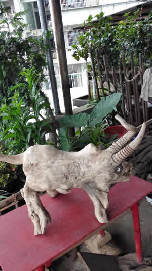 7月2日,筆者來到綽號為“奇石怪根”的石友劉忠榮住處,剛好看到他正在創作十二生肖的最后一件作品“中華龍”。只見他握著銼刀嫻熟地削、刻、磨……不一會兒,一條中華龍生肖樹根便活靈活現地出現在筆者眼前。劉忠榮開心不已地告訴說,“十二生肖”樹根前后共花了5年時間才完成,可謂“心血”之作。 ? 獨具慧眼 變“廢”為寶 從08年開始,劉忠榮對奇石怪根產生了濃厚的興趣,2011年,他加入了“浦城奇石協會”,擔任協會理事?!巴嫫媸指拖裉詫殻枰幸浑p慧眼?!眲⒅覙s說,去年12月,他來到盤亭鄉廟灣村,見到一村民正在院子里劈砍柴火,一塊造型奇特的墊木引起了他的注意。經交談得知,這塊墊木是該村民從爛倒的一棵老樹根部鋸下的,因為太硬不好燒火就留下來作墊木劈柴,上面還留下了一些淡淡的斧頭印跡。村民見他喜愛,就送給了他。一塊爛樹根到了劉忠榮手中,被他一搗騰,瞬間華麗變身:一頭栩栩如生的犀牛展現在眼前,只見它瞪圓雙眼,后腿繃直,尾巴聳起,怒視前方,像是要隨時發起攻擊似的,見者無不稱奇。“打磨的工具很簡單,斧頭、柴刀、銼刀、電鋸等。”劉忠榮說,他只是對樹根進行一些最簡單的造型修飾,盡量保留樹根的原始形狀。 ? 劉忠榮的興趣和一般人不同,他不在意石頭樹根的珍貴,愛的是它的奇趣?!拔覈L試著把樹根和石頭搭配在一起,組合成另類造型。” 在劉忠榮房子的三樓,滿滿當當的都是他收集來的“奇石怪根”?!八锌諒牟淮蚺?,就愛折騰這些東西?!眲⒅覙s的妻子笑著說,有時劉忠榮為了擺出更好看的造型,常常站在樹根前一琢磨就是半天,一旦擺出了新奇的造型,就跟小孩得了糖果一樣開心。 ? 以石為友? “鐵石”心腸 劉忠榮以愛玩“奇石怪根”在石友中聲名遠揚,而且他為人坦誠豪爽,所以朋友眾多。“我們常在朋友中進行藏品交流?!眲⒅覙s說。在他的藏品中,有一套西游記人物造型引起了筆者的注意。悟空探路、八戒扛鈀、沙僧挑擔、唐僧念經,師徒造型惟妙惟肖,生動逼真?!斑@是新版的西游人物造型?!眲⒅覙s介紹,四年前他還做過一套老版的唐僧師徒造型。浙江的一位石友過來交流,見之喜愛不已,出價1萬,他都舍不得轉讓。后來,協會的一位朋友看上了,劉忠榮以4000元的低價交流給了他。 ? “因為這個愛好,我結交了不少知己好友?!眲⒅覙s介紹,他收藏奇石怪根,主要目的就是鍛煉身體,陶冶情操,廣交朋友。他不僅在生活中以石為友,以石會友,在工作中,他常以石頭的品性處事,有一副“鐵石”心腸。有一次一位戰友運輸水泥違法超載,按規定處罰5000元并要卸貨分運。因為沒有徇私,他得罪了這位戰友,兩人至今沒有來往。“為了公路安全,就要秉公辦事,一視同仁,得罪人是免不了的?!?/span> ? 其實劉忠榮的“鐵石”心腸里藏的還有柔情百轉。去年我縣冰災期間,國道沿線堵車嚴重,經常有過路貨車拋錨在“前不著村,后不著店”的地方,劉忠榮和同事們徹夜巡邏,給司機們送去開水、泡面,并幫助他們聯系修理師傅,獲得了他們的交口稱贊。 ??????????????????? ??????????????????????????????(徐趙浦 吳勇君) |