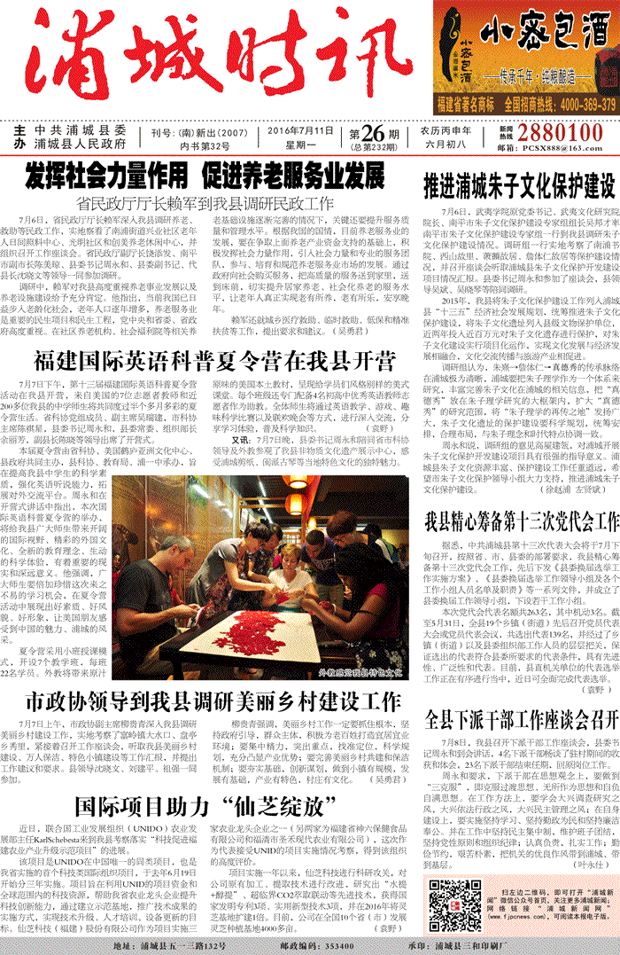 | 2016-07-14 08:32:23??來源: 責任編輯:浦城新聞網 我來說兩句 |