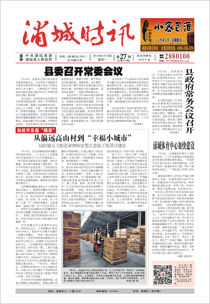 《浦城時訊》2016年第27期