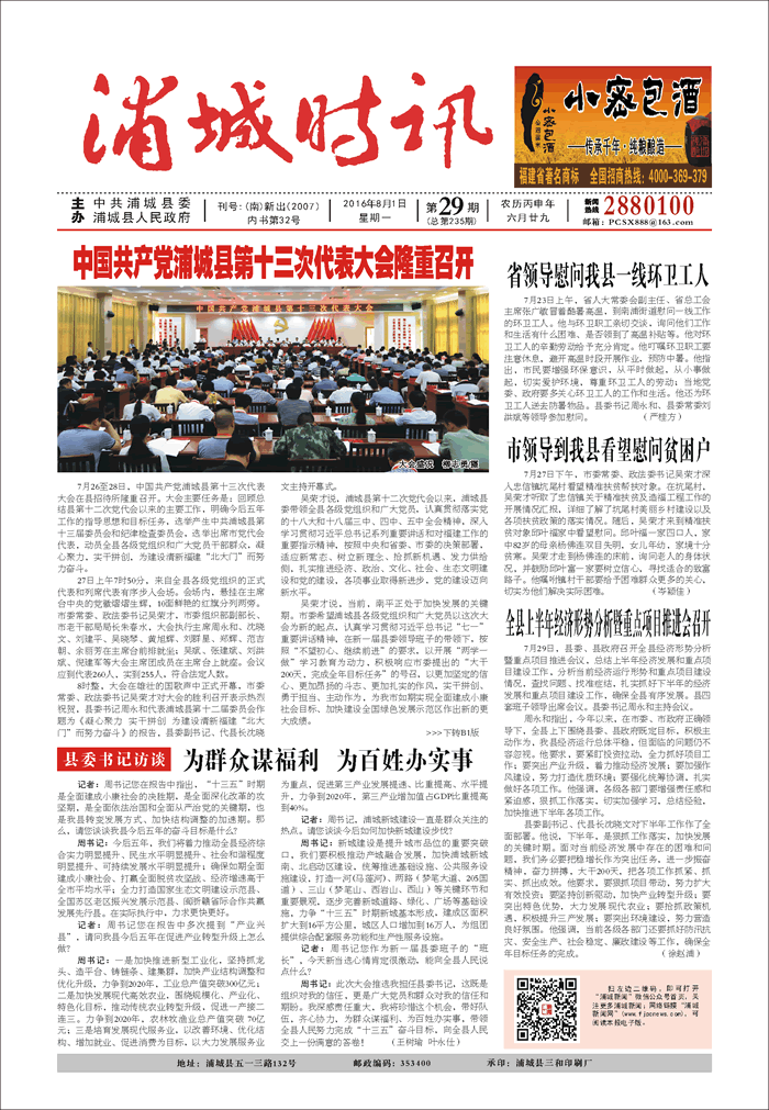 | 2016-08-02 08:42:32??來源: 責任編輯:浦城新聞網 我來說兩句 |
