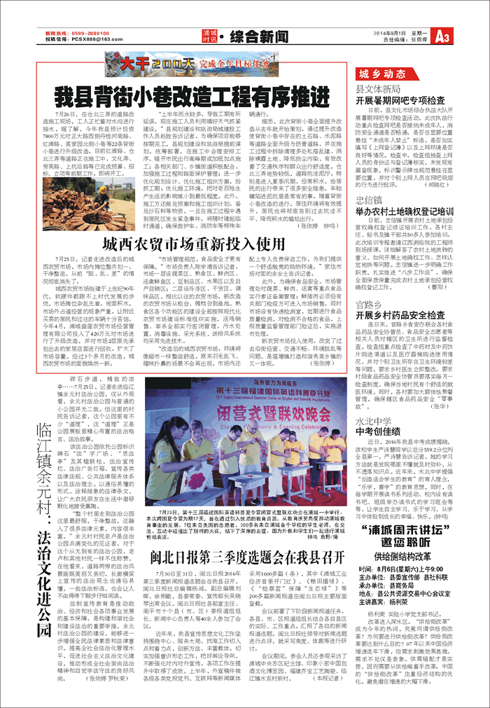 2016-08-02 08:42:32??來源:  責(zé)任編輯:浦城新聞網(wǎng)   我來說兩句
