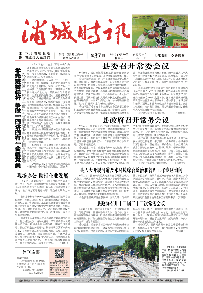 | 2016-09-28 08:48:22??來源: 責任編輯:浦城新聞網 我來說兩句 |