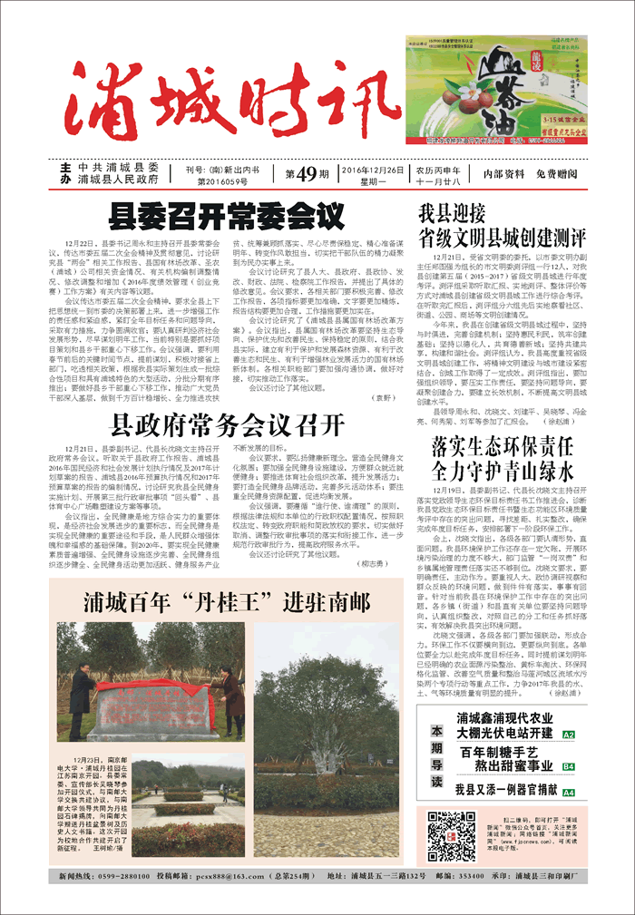 2016-12-30 11:08:22??來源:  責任編輯:浦城新聞網   我來說兩句