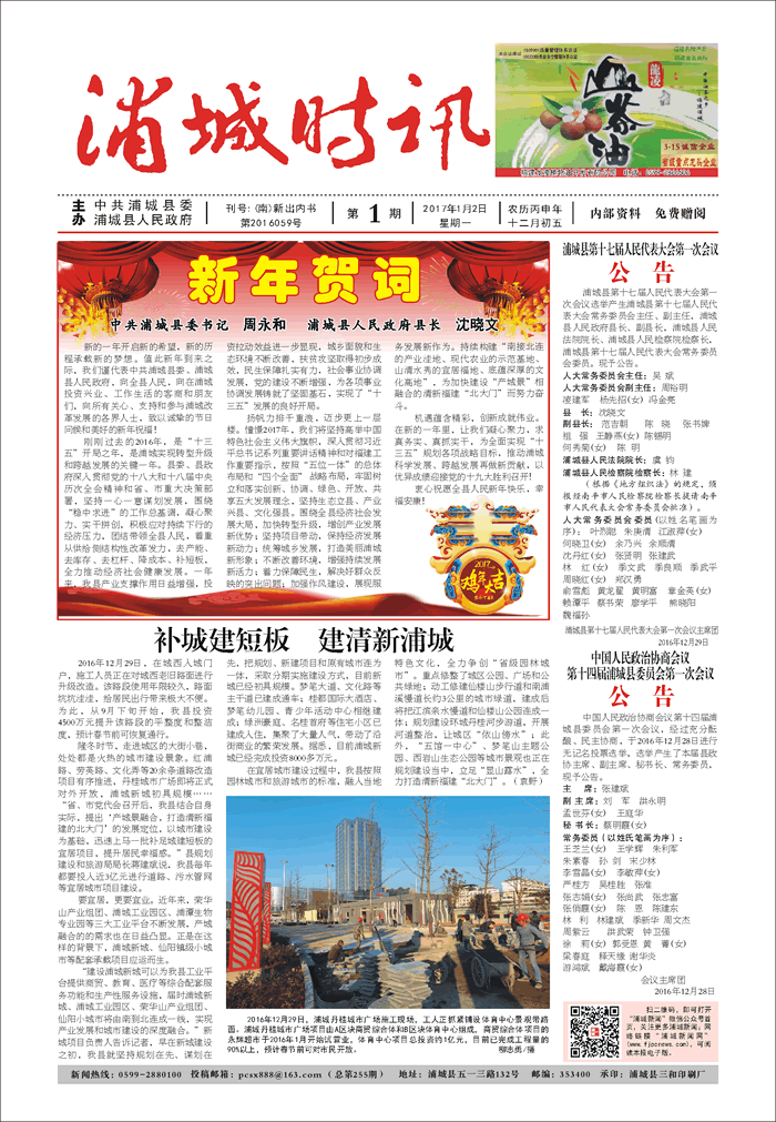 2017-01-03 17:12:13??來源:  責(zé)任編輯:浦城新聞網(wǎng)   我來說兩句