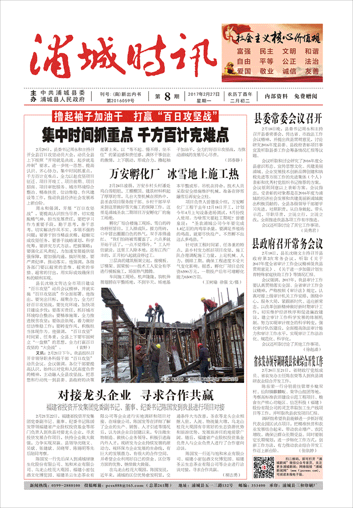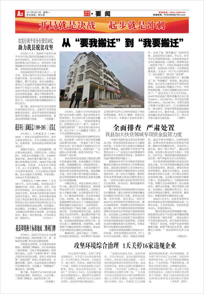 | 2017-02-27 17:54:21??來源: 責任編輯:浦城新聞網(wǎng) 我來說兩句 |
