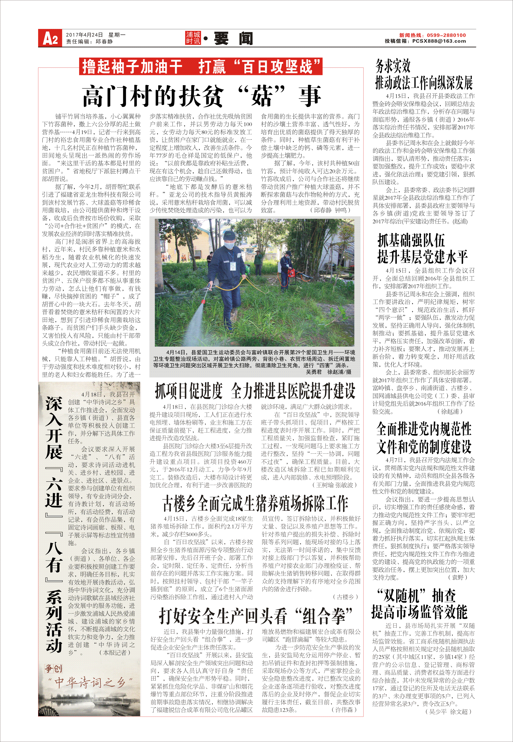 | 2017-04-24 17:08:25??來源: 責任編輯:浦城新聞網 我來說兩句 |