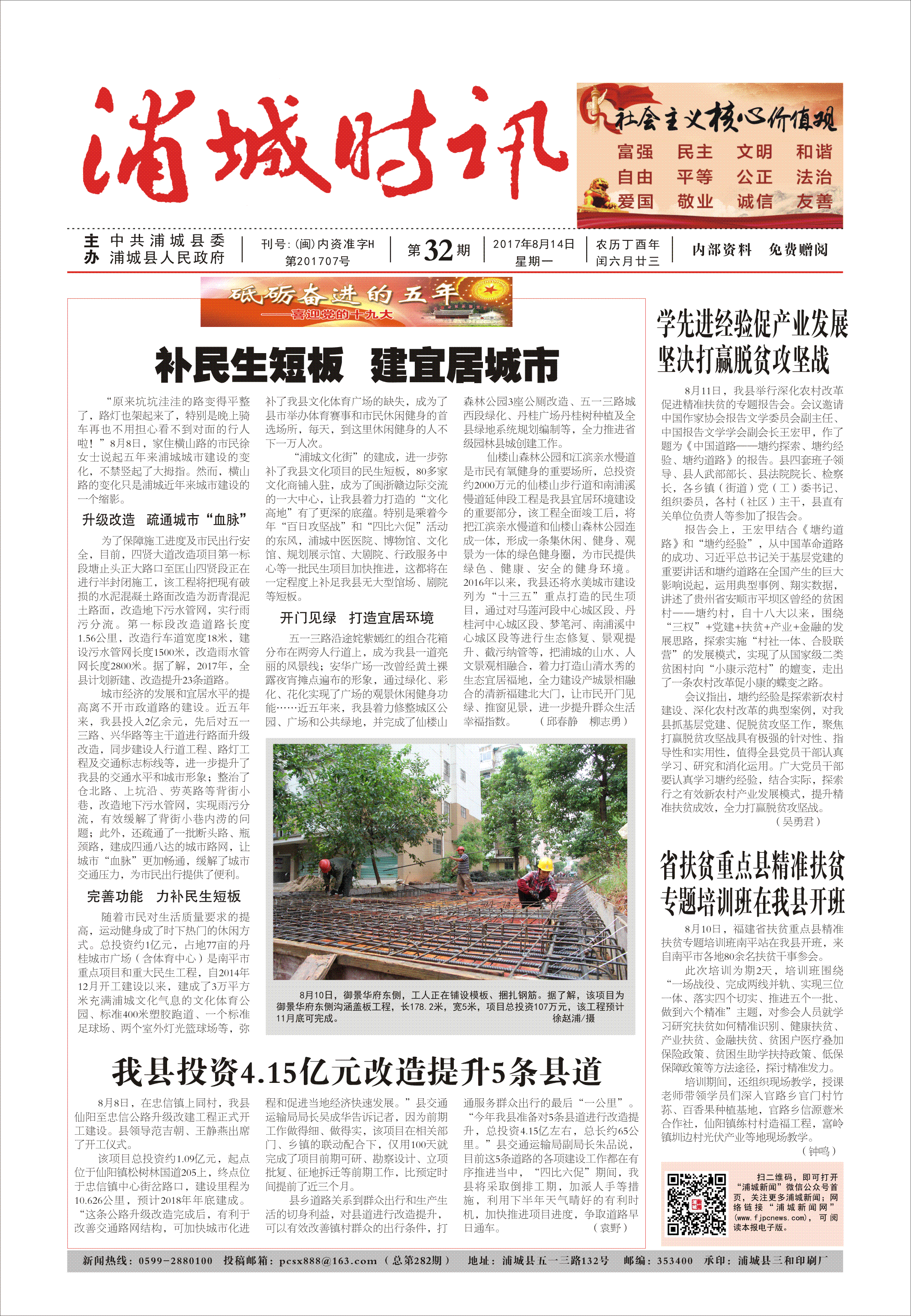 | 2017-08-15 16:16:20??來源: 責任編輯:浦城新聞網 我來說兩句 |