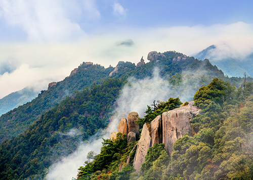 匡山-將軍出征石 上午浦城出發——富嶺鎮大水口鳥巢度假村——匡山國家森林公園(午餐);下午匡山國家森林公園——管厝青草洋森林人家——茶坪溯息谷——慶元紅色旅游村(晚餐),返程夜游丹桂城市廣場、江濱親水慢道、文化一條街。 ? 匡山國家森林公園: 匡山因山形“四周奮起、而中窳下,形似筐廬”而得名。2009年申報為國家森林公園,公園總面積達2014.27公頃,森林覆蓋率92.6%,分布著成片的香榧群落、黃山松群落、青錢柳群落。公園內群山疊翠,怪石嶙峋,有“將軍出征”、“伯溫遺墨”、“群蛙聚會”、“石蠟燭”、“千年石龜”,“風動石”、“雙門井”,“九獅戲水”、“碧湖羞女”等諸多奇石景觀。 青草洋休閑旅游區: 青草洋休閑旅游區距城關37公里。景區面積2萬余畝,其中國家級生態公益林7302畝,森林覆蓋率93%。山勢險峻,多斷壁峽谷、險灘。得天獨厚的原始次生林,形成了該景區豐富的動植物資源和獨特的景觀,成為集山、水、林、佛、道為一體的綜合性休閑勝地。 ? 線路三:???? 九石渡 烏龍山生態農業觀光園