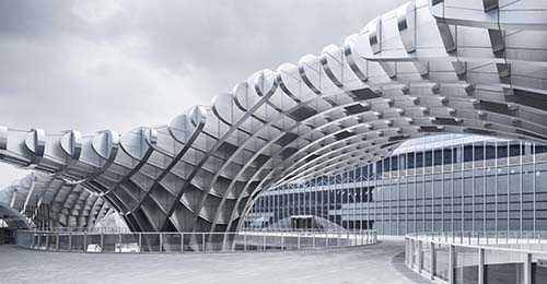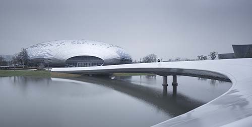 順昌博物館全貌 ? 為了形成完美的球面造型,他與團隊進行了仔細推敲,通過空間模型進行定點定位。走進會議中心內部,100多米的跨度內幾乎看不到一根柱子。結構設計采用的是有現代技術含量的單層網殼形式,在兩個半球相對處的墻面,采用斜支撐架結構支撐房頂,彰顯了整體空間利用率和開闊大氣的通透感。這處建筑成為“網紅”后,有專家點贊說,它美就美在現代形式的語境中又包涵了“近修林竹影,遠高山流水”的內在景觀,靈動地呈現了獨特的中國傳統意境和有顯著地域特征的山水寫意。 ?