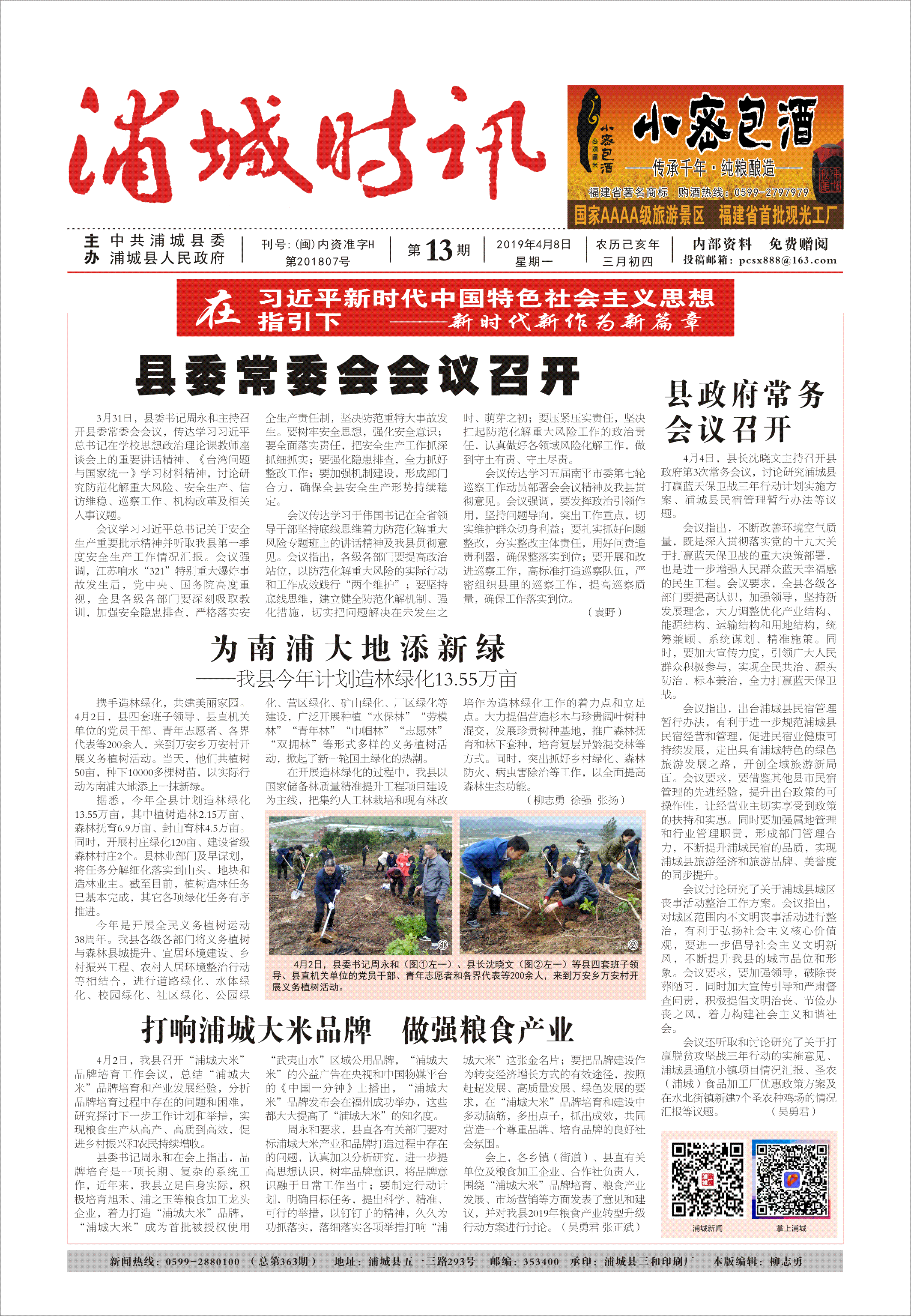 | 2019-04-08 10:19:47??來源: 責任編輯:浦城新聞網(wǎng) 我來說兩句 |
