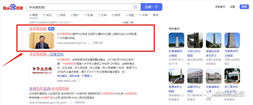 “網(wǎng)上祭奠”步驟 進入中華英烈網(wǎng)(網(wǎng)址:http://www.chinamartyrs.gov.cn)后,點擊“致敬2021清明祭英烈”專欄的“網(wǎng)上祭奠”板塊進行線上祭掃,在網(wǎng)上紀念堂為英烈敬獻鮮花、留言寄語等,向革命英烈表達崇敬之心、感念之情、傳承之志。 第一步:網(wǎng)址輸入“中華英烈網(wǎng)”點擊搜索,出現(xiàn)“中華英烈網(wǎng)首頁”。