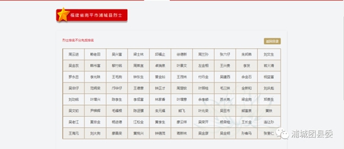 第二步:點擊烈士英名錄,出現(xiàn)地區(qū)烈士英名錄。