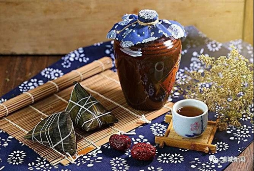 雄黃酒 端午節(jié)喝雄黃酒自古就有,古語曾說:“飲了雄黃酒,病魔都遠(yuǎn)走。”雄黃是一種礦物質(zhì),俗稱“雞冠石”,其主要成分是硫化砷,并含有汞,有毒。一般飲用的雄黃酒,只是在白酒或自釀的黃酒里加入微量雄黃而成,無純飲的。雄黃酒有殺菌驅(qū)蟲解五毒的功效,中醫(yī)還用來治皮膚病。在沒有碘酒之類消毒劑的古代,用雄黃泡酒,可以祛毒解癢。未到喝酒年齡的小孩子,大人則給他們的額頭、耳鼻、手足心等處涂抹上雄黃酒,意在消毒防病,蟲豸不叮。