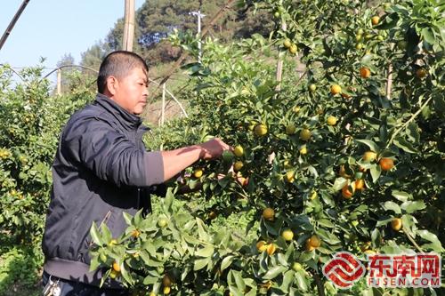 劉曉林在查看金桔生長情況 吳勇君 攝 東南網訊 “到了,這就農場種植的四季金桔,現在已經開始泛黃可以陸續采摘了。”剛下車,就見路旁一個個胖乎乎、圓滾滾的金桔掛滿枝頭,金黃色的金桔映襯在綠色果樹中間,猶如一個個金元寶,甚是好看,引人垂涎。11月11日,位于浦城縣河濱街道李梅村的紅陽家庭農場,成熟的金桔已綴滿枝頭,到了采摘上市時節,農場負責人劉曉林一邊帶筆者參觀果園,一邊作介紹。