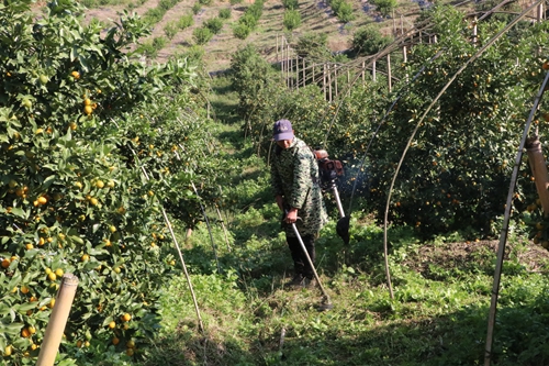 人工除草 吳勇君 攝 “現在金桔才受一次霜打,再經一次霜后,味道會更好?!眲粤终f,這片金桔有10畝,畝產3000斤,從11月中旬開始采摘,可以持續到明年2月。果子品質有了,自然引來游人不斷,這讓農場內的果子以游客采摘和微信群預定的形式就可以售完,不需要運送到市場上銷售。據悉,來采摘的游客以每斤8元的價格計算,而微信群里預定的則會由農場負責采摘下來,再包裝好送到指定地點。 “農場現在在繼續進行基礎設施的完善,我們計劃建造個農莊,集采摘,垂釣,農家飯于一體,提升游客樂趣?!眲粤终f。(馬啟燕 吳勇君) |
