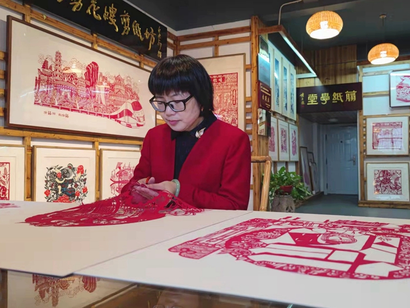 1月25日,在南平市浦城縣剪花嫂剪紙坊,國家非遺浦城剪紙省級非遺傳承人周冬梅正在剪制“福”文化系列剪紙。“我現在正在剪的是以南平市一座山、一片葉、一只雞、一根竹、一瓶水‘五個一’特色產業為主題的‘福’文化系列作品。”周冬梅介紹說,運用浦城剪紙“字中有畫、畫中有字、以字組畫”的特點,在象征圓滿幸福的圓形“福”字造型中融入地方產業特色,在新年來臨之際為家鄉發展送上美好祝福。據悉,目前,周冬梅已完成包括融入福建區域文化標識的“萬福來朝”系列在內的“福”文化剪紙18幅,以剪紙藝術形式將“福”文化具象化、符號化。(邱春靜) |