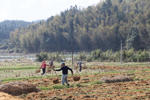 “播種、覆土、施肥……”近日,記者在浦城縣富嶺鎮(zhèn)大莊村竹蓀種植基地看到一派繁忙景象,村民們正忙著種植竹蓀。“眼下正是種植竹蓀的好時節(jié)。”該竹蓀種植基地負責人張澤平告訴記者,“種植竹蓀需要先用微耕機將土塊打碎成粗土和細土,用粗土開溝起壟,撒上生根水、菌包、肥料,再蓋上一層細土并抹平。”
