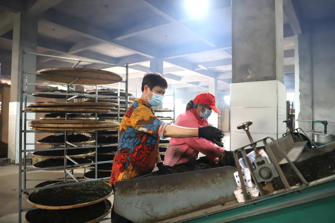 “幸福母親”在烘焙茶葉 “黃英的兩個女兒均在上學,原來家庭經濟負擔較重。入股我們公司,既能實現家門口就業增收,又能照顧家里。像黃英這樣的計生母親通過幸福工程款入股我們公司的,今年有10戶,每戶固定分紅有5000元左右。”浦城縣豐溢茶葉有限公司董事長廖漢亮介紹,黃英的丈夫是長年在茶場務工,主要從事鋤草、采摘等管護工作,黃英則在茶葉采摘加工農忙時間,到廠里打工,一天收入有200元左右。