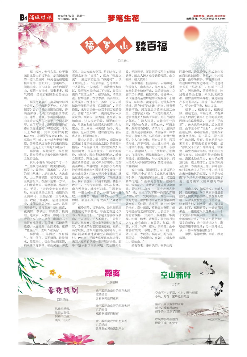 2022-05-05 15:04:10??來源:浦城新聞網  責任編輯:肖練冰   我來說兩句