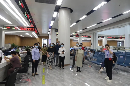 “政務服務體驗官”參觀縣行政服務中心辦證大廳 儀式前,中心工作人員引導“政務服務體驗官”參觀縣行政服務中心辦證大廳,“政務服務體驗官”們依次參觀了咨詢處、自助服務區、稅務事務辦理區、交通違章處理、戶籍辦理等服務窗口,詳細了解了行政服務中心的業務辦理全流程以及“跨省通辦”“一件事窗口”等創新措施。