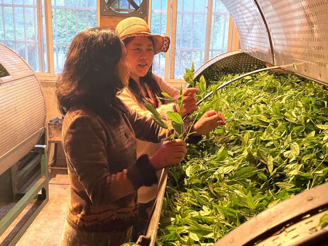 廖美蓉采收桂花,制作浦城丹桂茶 2011年,在外拼搏創業二十余載的廖美蓉、廖漢亮姐弟倆,通過富嶺鎮黨委政府招商引資,帶著2000多萬元積蓄回到家鄉當起了茶農,種下水仙、肉桂、奇蘭等10個品種的茶苗,為流轉來的1200多畝荒山披上飄著茶香的綠裝。從大都市到小山村,從做貿易到當茶農,廖美蓉姐弟倆一株一株種茶樹,一磚一瓦建廠房,只為牽掛著年少離家時,母親塞進懷里那包家鄉茶的淳樸味道。 “茶山2015年開始有收成,我們請一位制茶師傅來做茶,20天左右要支付6萬元工資,這可不是小數目?!绷蚊廊卣f,更重要的是,缺少專業知識做支撐,茶做得好壞難以區分,價值多少心里沒底,更不用說對制茶師傅提出更高要求以提升茶的品質了。押下全部身家做茶企,自己卻是個“門外漢”,廖美蓉的心中猶如壓著千斤巨石。為了沖破困局,讓漫山綠葉真正變成優質茗茶,她決定從修煉“內功”做起,拿起課本走進教室,拜師學藝從零開始。