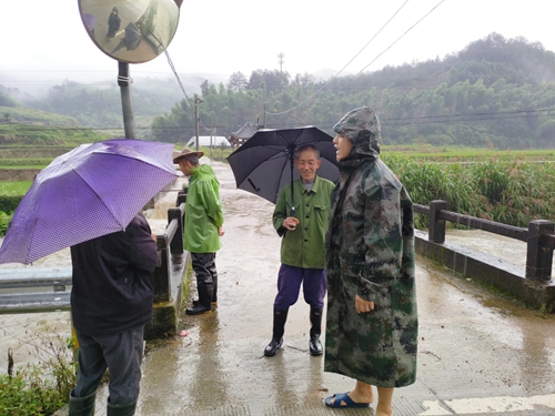 勸導群眾轉移至安全地帶 6月18日15時,浦城縣氣象局啟動氣象災害暴雨一級應急響應,劉文強迅速反應,第一時間對村內各個可能發生災情的隱患道路進行封鎖,并全面管控。為防止深夜群眾看不清道路,靠近封鎖路段,劉文強組織黨員干部輪流在村內各封鎖路段進行站班值守,充分保障村內廣大人民群眾的生命財產安全。