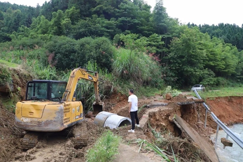 疏通道路塌方 在水尾村道路塌方路段,鎮(zhèn)村干部緊急調(diào)配挖掘機、推土機對道路塌方進(jìn)行清理作業(yè),疏通交通路線。同時,水北村村干部組織人員對被洪水沖斷的自來水管進(jìn)行搶修,2個村6000多人的供水也已全面搶通。