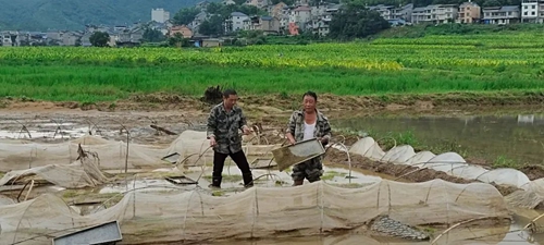 清理塌方 該村另一處有路段塌方,浦城縣應(yīng)急救援第六方陣(交通部門)及時到現(xiàn)場處理,該村黨支部書記王新濤現(xiàn)場協(xié)調(diào)指揮,不一會兒,道路及時得到疏通,道路恢復(fù)正常交通。“昨天的大水淹沒了一些田,鎮(zhèn)里農(nóng)技站及時給村民補發(fā)了秧苗,村民回去補種,爭取把損失降低到最小。”王新濤告訴記者,該村總體財產(chǎn)損失是比較小的。 “在這次洪災(zāi)來之前,我們就做了充分的準(zhǔn)備,提前轉(zhuǎn)移了人員和重要財產(chǎn),做到了沒有人員傷亡,把財產(chǎn)損失減少到最小。”富嶺鎮(zhèn)黨委副書記、鎮(zhèn)長伍麗穎說。 下一步,該鎮(zhèn)將繼續(xù)加強開展災(zāi)后的安全隱患排查以及消殺工作,做好道路巡查,房屋排查,分類修繕重建,嚴(yán)防次生災(zāi)害的發(fā)生。 濠村鄉(xiāng) 連續(xù)的強降雨,導(dǎo)致濠村鄉(xiāng)大面積農(nóng)作物被淹,針對今年受災(zāi)水淹情況,濠村鄉(xiāng)科技特派員吳火金及時到現(xiàn)場指導(dǎo)種植戶排除田間積水、追加肥料、防治病蟲害等,并為今后一段時間的田間管理和病蟲害防治提出了指導(dǎo)性意見,提醒農(nóng)戶什么時間用藥、什么時候補施肥料,跟他們進(jìn)行詳細(xì)解答。