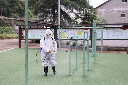 對校園重點區域進行消殺 浦城官路中學政教處主任李建兵:“我們堅持每天在校大門、宿舍對學生進行三次體溫測量,建立學生的健康檔案,并對校園重點區域定時消殺,全面筑牢校園疫情防控‘安全線’。”