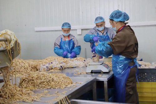 雞腸包裝 “現在,雞腸加工廠一天能加工8噸產品,我們集團每噸產品給予100元的村財補貼,每年可為村財增收20余萬元。”聶崇輝說。 據了解,雞腸加工廠先后投入資金2000余萬元,于2020年9月開始建設,2021年建成投產,現已吸納3個村60余名群眾實現穩定就業。(馬啟燕 柯柳青) |
