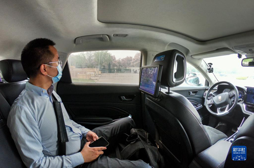 在北京經(jīng)濟技術(shù)開發(fā)區(qū),一名乘客在體驗“主駕無人、副駕駛配備安全員”的無人駕駛車(2022年4月25日攝)。新華社記者 彭子洋 攝 在北京經(jīng)濟技術(shù)開發(fā)區(qū)宏達南路,記者通過應(yīng)用軟件呼叫自動駕駛車輛,3分鐘后,一輛轎車駛來停靠在路邊。等候交通信號燈、超車、并線,車輛全程自動行駛。 依托北京市高級別自動駕駛示范區(qū),北京2021年設(shè)立國內(nèi)首個智能網(wǎng)聯(lián)汽車政策先行區(qū),已進行了無人配送車上路、高速公路測試、無人化測試,目前累計安全測試里程接近300萬公里。