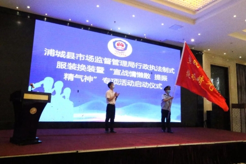 7月18日上午,浦城縣市場監(jiān)管局行政執(zhí)法制式服裝換裝儀式暨“宣戰(zhàn)慵懶散、提振精氣神”專項(xiàng)活動(dòng)啟動(dòng)儀式在浦城大酒店舉行。縣委書記沈曉文、副縣長何秀菊出席儀式。 伴隨著嘹亮的國歌,儀式正式開始。縣市場監(jiān)管局全體人員身著新式制服精神抖擻、整齊列隊(duì),高舉右手莊嚴(yán)宣誓。鏗鏘有力的誓詞,充分體現(xiàn)了縣市場監(jiān)管執(zhí)法人員獻(xiàn)身市場監(jiān)管事業(yè),服務(wù)社會(huì)發(fā)展、守護(hù)人民群眾的堅(jiān)定決心;以藏青色、晴空藍(lán)為主,搭配國徽、盾牌等元素的統(tǒng)一制式服裝,標(biāo)志著市場監(jiān)管隊(duì)伍法制化、規(guī)范化、標(biāo)準(zhǔn)化、正規(guī)化邁上了新臺(tái)階,展現(xiàn)新起點(diǎn)、新形象、新征程。 沈曉文給縣市場監(jiān)管局代表莊重授旗后,他提出要求,要倍感使命光榮,揚(yáng)帆新征程。深刻認(rèn)識(shí)統(tǒng)一換裝的意義,緊盯市場監(jiān)管工作新形勢新任務(wù),強(qiáng)化責(zé)任擔(dān)當(dāng)、創(chuàng)新監(jiān)管思路、積極轉(zhuǎn)變作風(fēng),全力推動(dòng)市場監(jiān)管各項(xiàng)工作取得新進(jìn)展、實(shí)現(xiàn)新突破、開創(chuàng)新局面;要堅(jiān)持執(zhí)法為民,展現(xiàn)新作為。樹牢“以人為本、執(zhí)法為民”理念,堅(jiān)決守住安全底線,嚴(yán)厲打擊違法行為,切實(shí)擔(dān)負(fù)起防風(fēng)險(xiǎn)、強(qiáng)監(jiān)管、保安全、優(yōu)服務(wù)、惠民生的艱巨任務(wù),不斷提升人民群眾的獲得感、幸福感、安全感;要強(qiáng)化隊(duì)伍建設(shè),樹立新形象。把抓隊(duì)伍外在形象和內(nèi)在素質(zhì)緊密結(jié)合,深入開展“宣戰(zhàn)慵懶散,提振精氣神”活動(dòng),加強(qiáng)執(zhí)法隊(duì)伍正規(guī)化建設(shè),進(jìn)一步提升執(zhí)法能力和執(zhí)法水平,做到敢執(zhí)法、能執(zhí)法、善執(zhí)法、會(huì)執(zhí)法,全力打造“市場監(jiān)管行政執(zhí)法鐵軍”。他希望,市場監(jiān)管部門以“換裝”為契機(jī),始終不忘初心,牢記使命,進(jìn)一步推進(jìn)規(guī)范執(zhí)法、文明執(zhí)法,不斷加強(qiáng)隊(duì)伍管理,提高執(zhí)法水平,推進(jìn)市場監(jiān)管工作再上新臺(tái)階,為建設(shè)新時(shí)代富美福建“北大門”作出新的更大貢獻(xiàn)。 “我們將貫徹落實(shí)縣委縣政府‘宣戰(zhàn)慵懶散、提振精氣神’專項(xiàng)活動(dòng)工作部署,勇于擔(dān)當(dāng),奮勇爭先。以優(yōu)異的工作成效迎接黨的二十大勝利召開。”縣市場監(jiān)督管理局人教股股長范雪蓮說。 儀式上,縣市場監(jiān)管局執(zhí)法干部代表徐勇、基層所代表李建浦作“宣戰(zhàn)慵懶散,提振精氣神”表態(tài)發(fā)言。(馬啟燕 余恒毅) |