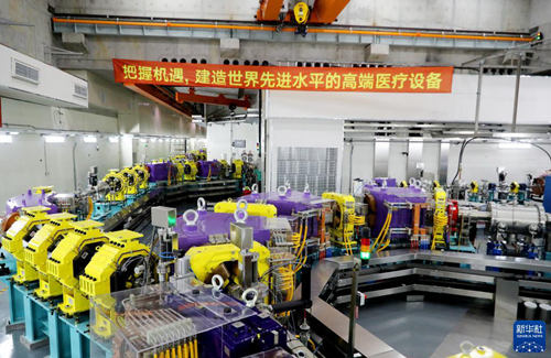 這是上海交通大學(xué)附屬瑞金醫(yī)院腫瘤質(zhì)子中心內(nèi)的質(zhì)子同步加速器區(qū)(2022年5月21日攝)。新華社記者 方喆 攝 這一治療癌癥的新設(shè)備——首臺(tái)國(guó)產(chǎn)質(zhì)子治療示范裝置,是上海光源和轉(zhuǎn)化醫(yī)學(xué)兩個(gè)大科學(xué)設(shè)施“聯(lián)姻”的結(jié)晶。“瞄準(zhǔn)最頂尖醫(yī)療科技,從原始創(chuàng)新突破到集成研究發(fā)展、產(chǎn)業(yè)應(yīng)用,我們走了一條新路。”中國(guó)工程院院士、瑞金醫(yī)院院長(zhǎng)寧光說(shuō)。 2014年5月,習(xí)近平總書記在上海考察時(shí)強(qiáng)調(diào),上海要加快建設(shè)具有全球影響力的科技創(chuàng)新中心。 十年來(lái),上海科技創(chuàng)新策源功能持續(xù)提升。從15條線站增至27條,上海光源開(kāi)放多年來(lái),這臺(tái)“超級(jí)顯微鏡”服務(wù)了3萬(wàn)多名國(guó)內(nèi)外用戶;地下30米深,硬X射線自由電子激光裝置正加緊建設(shè),將推動(dòng)我國(guó)光子科學(xué)從“跟隨”到“引領(lǐng)”的飛躍;1拍瓦、10拍瓦,再到向百拍瓦功率邁進(jìn),超強(qiáng)超短激光實(shí)驗(yàn)裝置——“羲和”進(jìn)入運(yùn)行模式……如今,上海在用在建的大科學(xué)設(shè)施已有14個(gè),居全國(guó)首位。