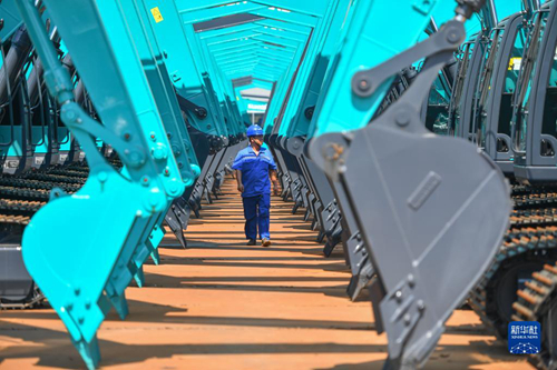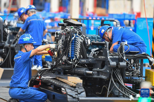 在位于湖南長沙經(jīng)開區(qū)的山河智能裝備股份有限公司,工作人員在組裝機械裝備(2022年7月1日攝)。新華社記者 陳澤國 攝 湖南全力推進自主創(chuàng)新。先進儲能材料、“天河”系列超級計算機、超高速軌道交通牽引技術(shù)……湖南強化電力、算力、動力“三力”支撐,夯實現(xiàn)代化建設(shè)之基。 十年來,湖南實施戰(zhàn)略性新興產(chǎn)業(yè)技術(shù)攻關(guān)項目453個、高新技術(shù)產(chǎn)業(yè)科技創(chuàng)新引領(lǐng)計劃項目400個。 主動服務(wù)國家開放戰(zhàn)略,深度融入共建“一帶一路”,推動對外貿(mào)易創(chuàng)新發(fā)展。湖南在內(nèi)陸開放進程中邁開步伐:中非經(jīng)貿(mào)博覽會永久落戶;湖南地區(qū)去年開行中歐、中亞國際班列580列,抵達22個國家……
