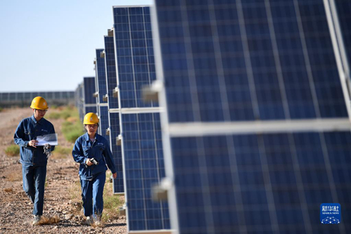 2022年6月13日,光伏電站工作人員李靜(右)和同事在甘肅省金昌市華能集團西坡光伏電站現場巡檢。新華社記者 陳斌 攝 同時,甘肅搶抓“一帶一路”建設機遇,加快形成內外兼顧、陸海聯動、向西為主、多向并進的開放新格局。 10年間,甘肅獲批建成并運營8類10個指定口岸,形成中亞、歐洲、南亞、西部陸海新通道“四向五條”國際貨運通道,在“一帶一路”沿線國家設立國際營銷網點84個,與180多個國家和地區建立經貿往來關系,開放平臺帶動效應不斷釋放。 目前,甘肅外貿主體規模增加到7000多家,10年來外貿進出口總值近5000億元,其中“一帶一路”沿線國家進出口貢獻占比40%左右。